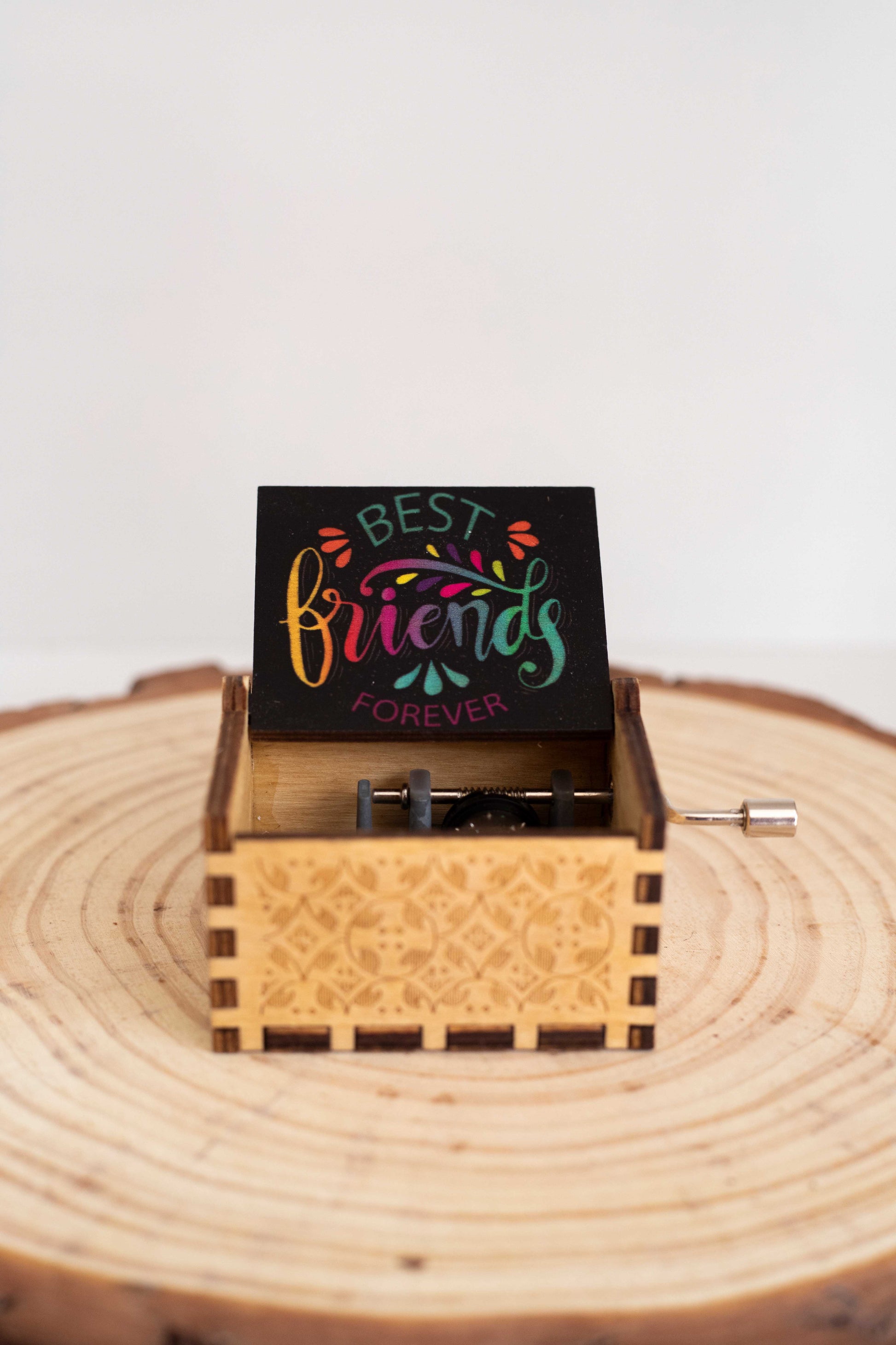 *Tipo cofrecito con mecanismo a manivela (manual). Reproduzca la melodía al girar la manivela.